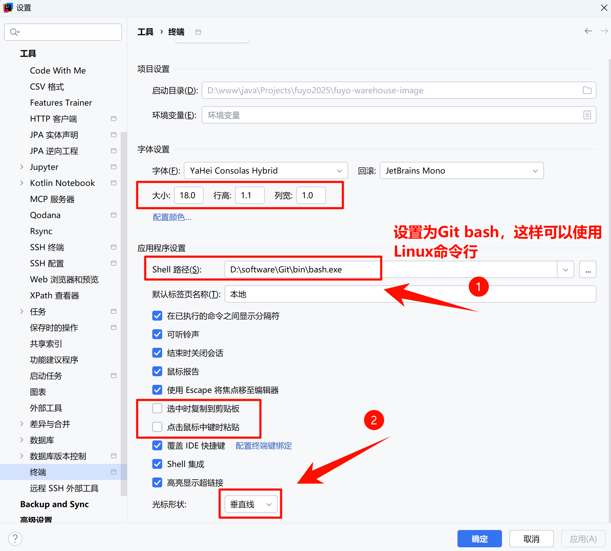 4、把终端设置为 Git的bash,这样就可以使用Linux命令行了