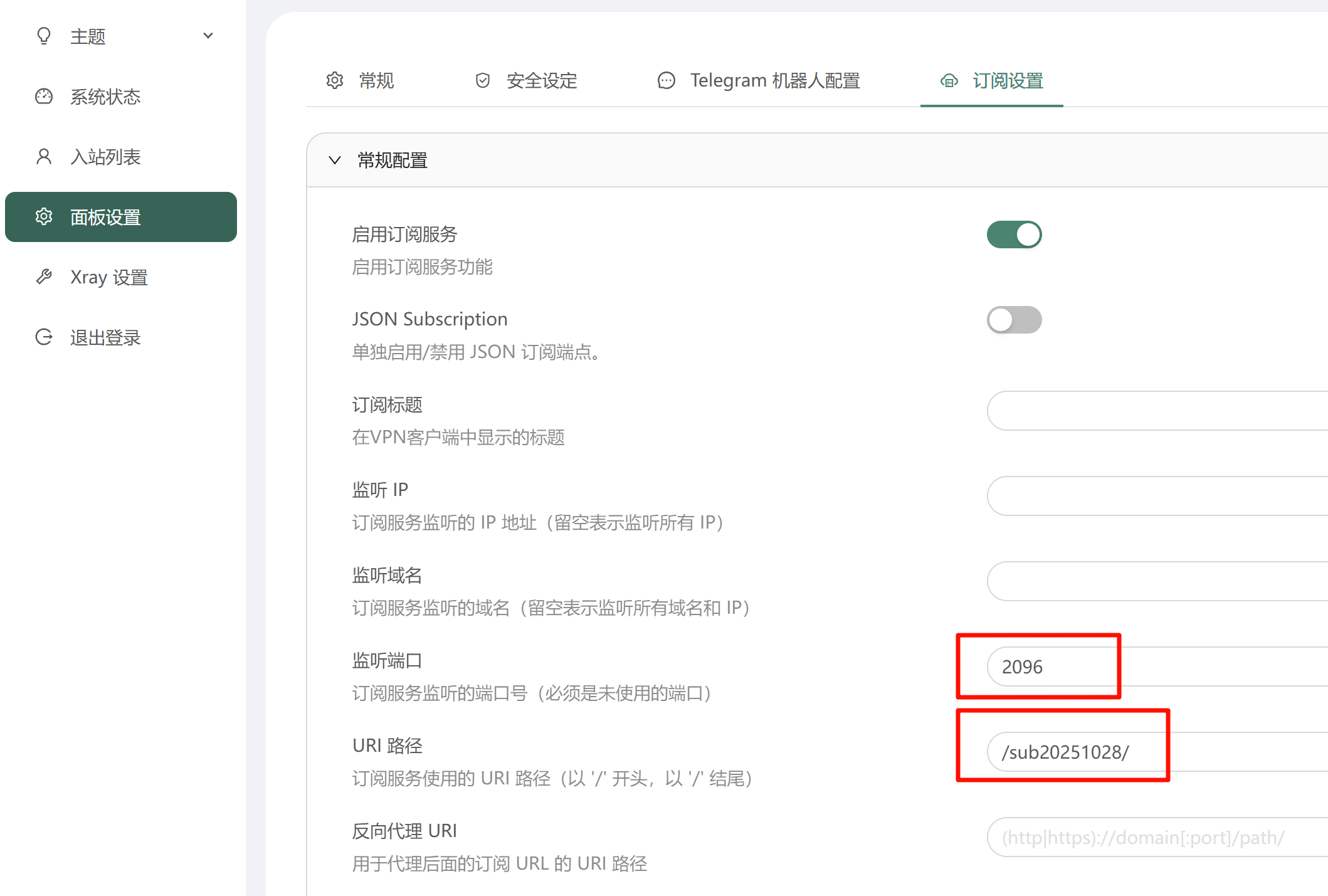 # 订阅(注意:需要跟后台配置保持一致)