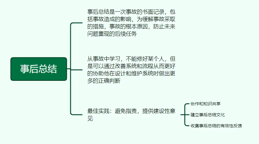 事后总结是一次事故的书面记录,包括事故造成的影响,为缓解事故采取的措施,事故的根本原因,防止未来问题重现的后续任务。
