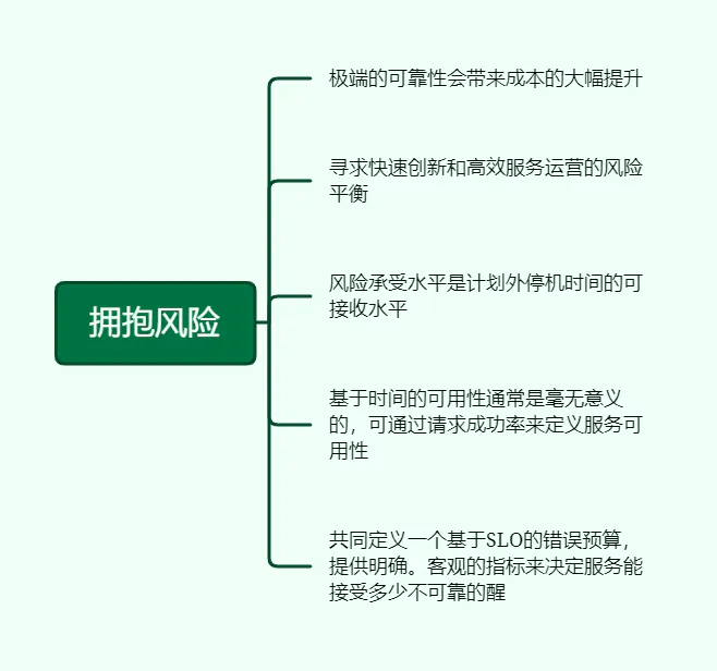 共同定义一个基于SLO的错误预算,提供明确、客观的指标来决定服务能接受多少不可靠性。