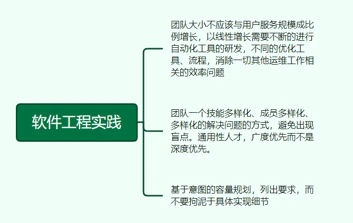 团队大小不应该与用户服务规模成比例增长,以线性增长需要不断的进行自动化工具的研发,不同的优化工具、流程,消除一切其他运维工作相关的效率问题。