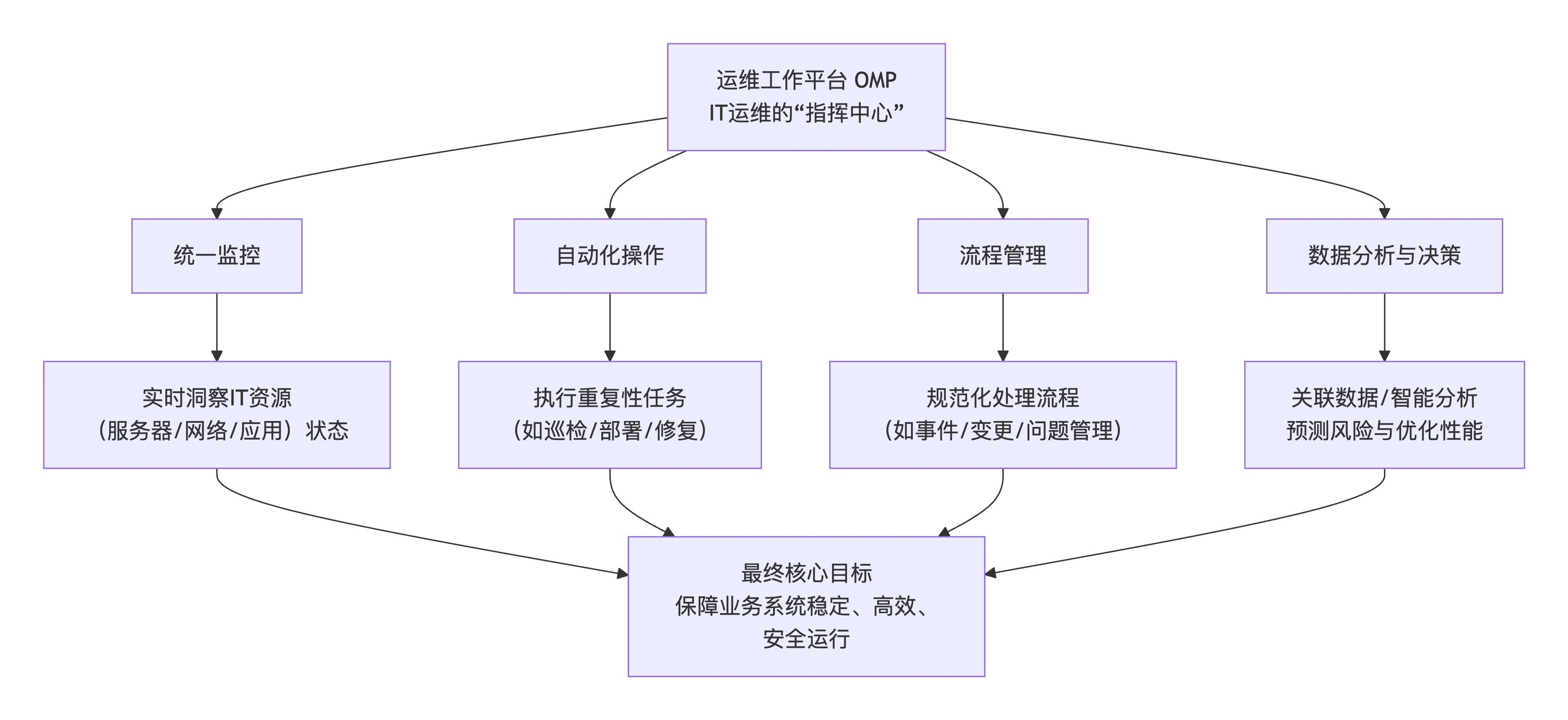 - 与 ITIL/ITSM 的关系:OMP通常是实现ITIL最佳实践和ITSM流程(如事件、变更管理)的技术工具。