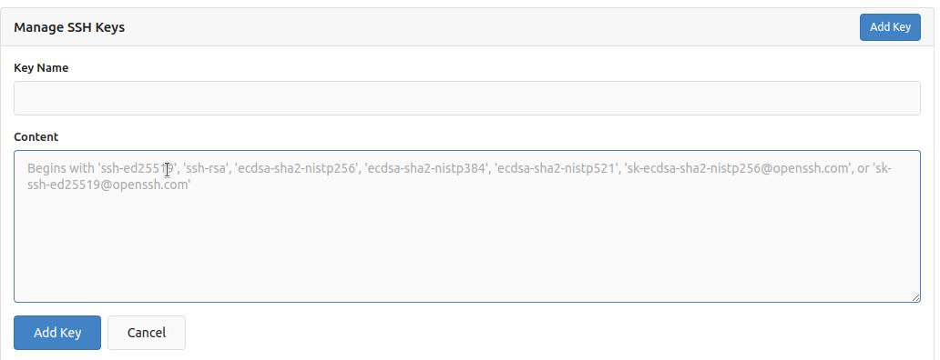 Contents - SSH Private Key Contents:粘贴