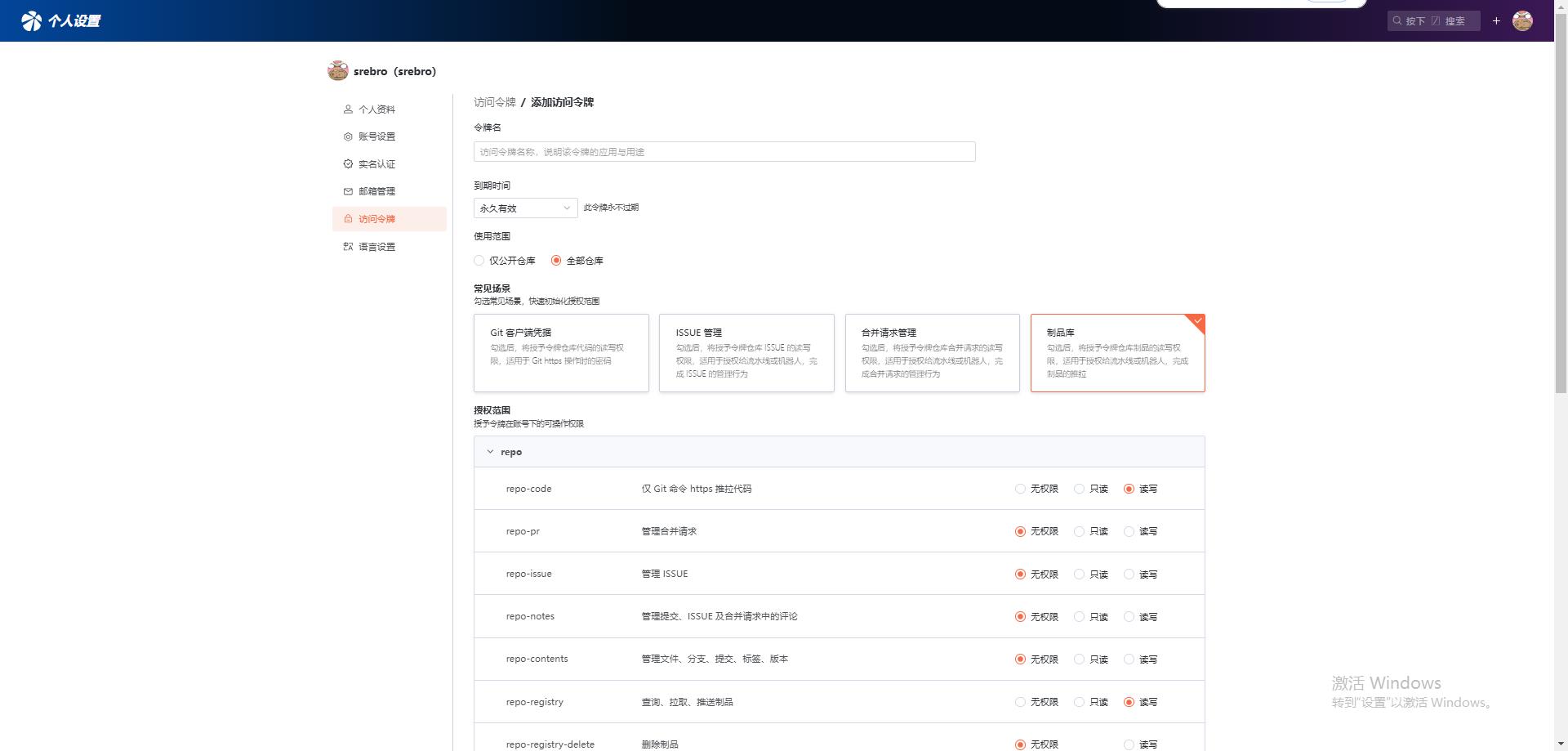 1. Gitea 生成令牌