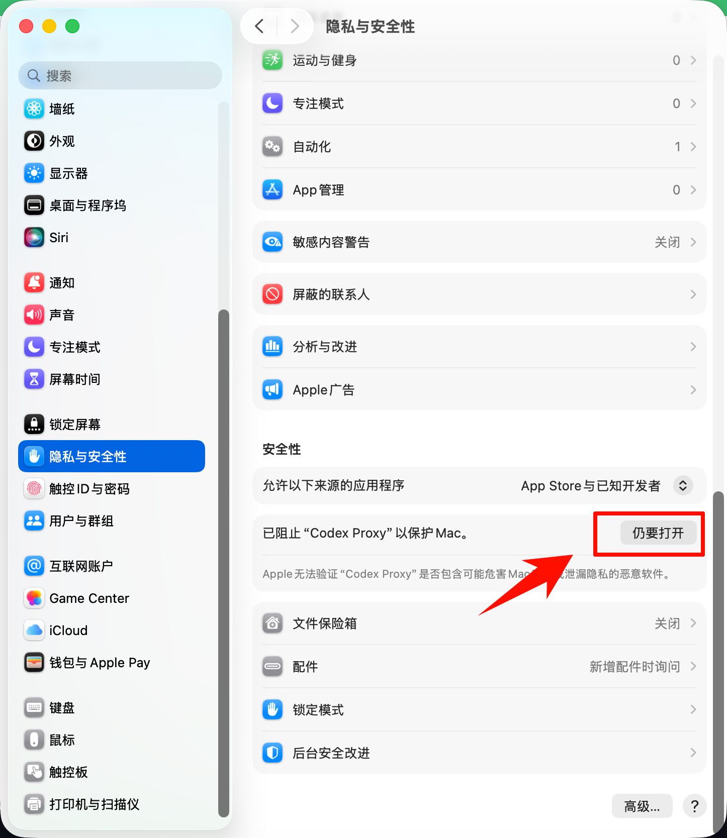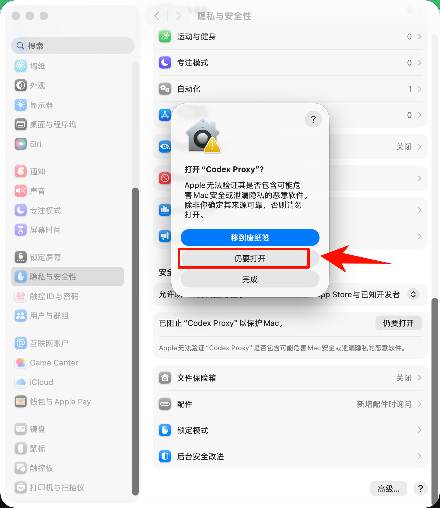 Mac提示:软件已损坏,Apple无法验证“Codex Proxy”是否包含可能危害Mac安全或泄露隐私的恶意软件
