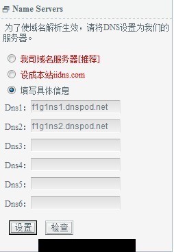 注意右侧的 Name Servers 窗口,里面便是DNS服务器列表。将原来的DNS删除后,填写你打算使用的新的DNS服务器地址,最后点击设置即可。