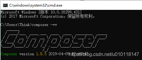7、使用 composer -vv 命令查看composer版本,如图为配置成功:
